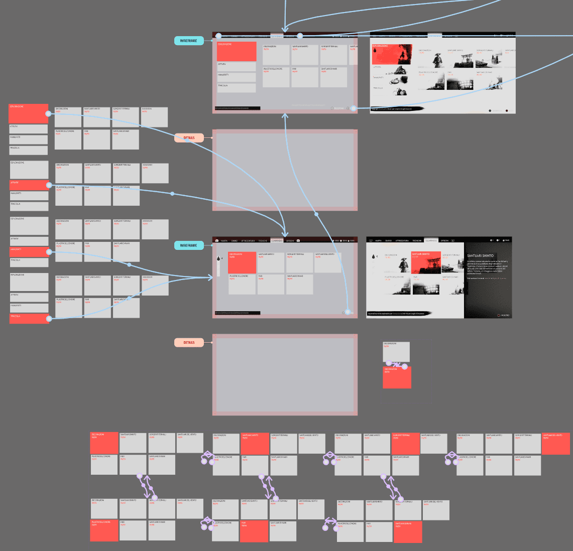 Sviluppo di wireframe statici e interattivi ad alta fedeltà, realizzati con Figma e Photoshop, per definire layout, flussi logici e struttura visiva dell’interfaccia utente.